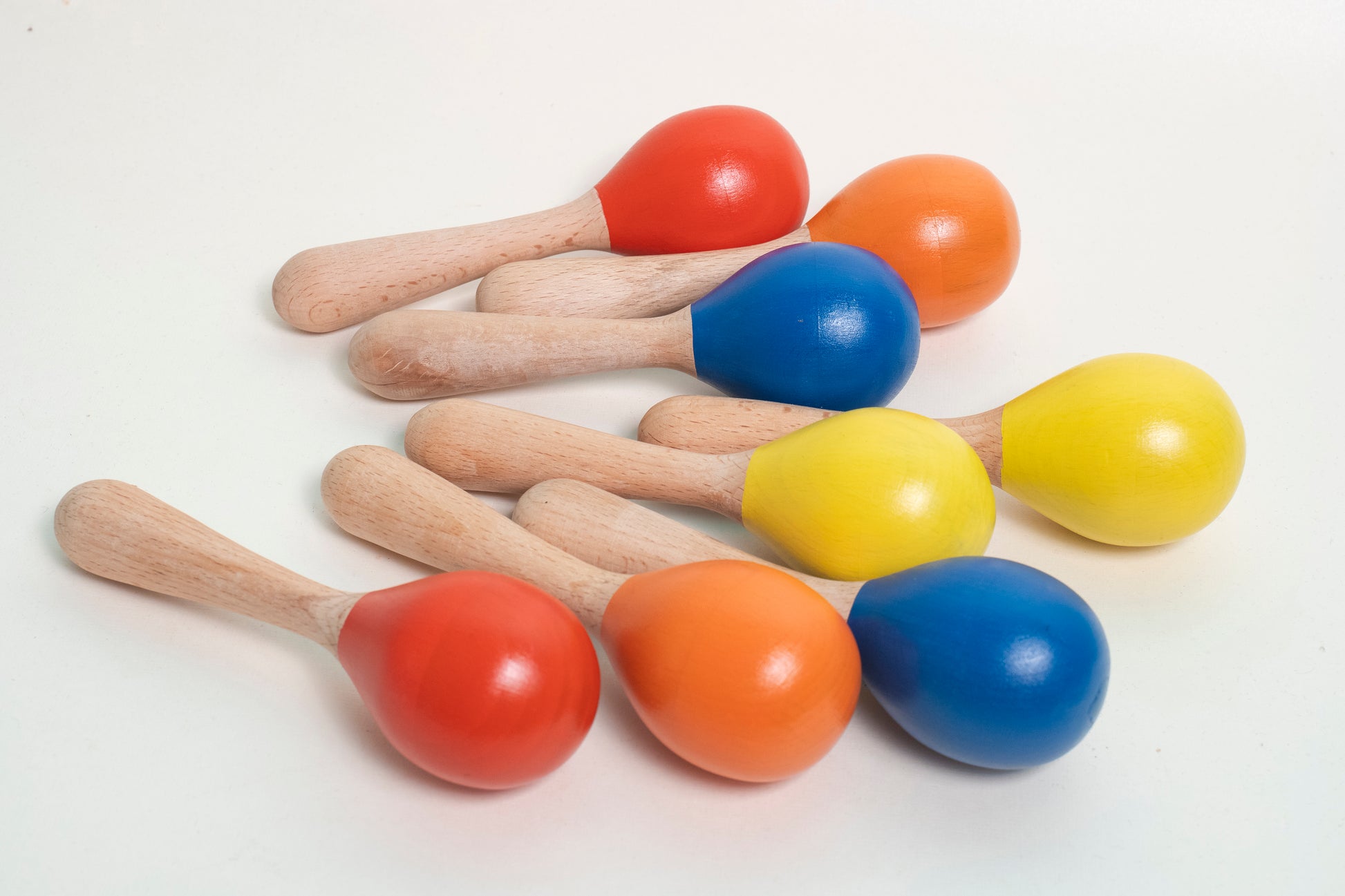 Our sweet maracas make a delicate rattle noise that little ones will love and find soothing. Mums and dads can also use the maracas to accompany their singing during music play time with little ones.