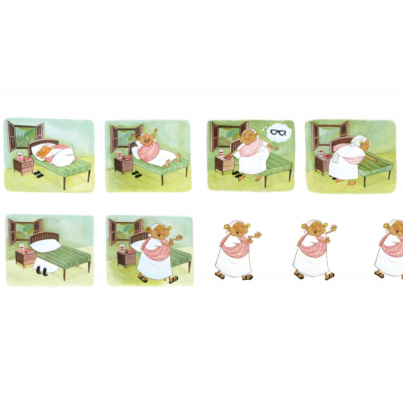 Ammachi can’t find her glasses one morning and everything goes topsy-turvy! Page after page spills with drama, humor, detail and local flavor as Priya Kuriyan spins a hilarious tale about a crazy day with unforgettable Ammachi — “the archetypal grandmother from memories of my own childhood in Kerala,” as Priya says. The celebrated illustrator is at her best in her first wordless picture book.