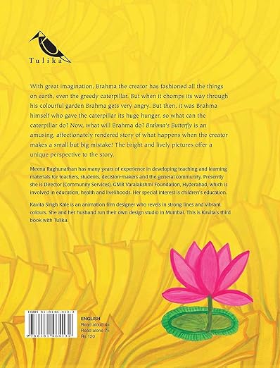 With great imagination, Brahma the creator has fashioned all things on earth, even the greedy caterpillar. One day, however, it chomps its way through his colourful garden and Brahma gets very angry. But then, it was Brahma himself who gave the caterpillar its huge hunger, wasn’t it? So what was the caterpillar to do? And now, what will Brahma do? An amusing story of what happens when the creator makes a small but big mistake!