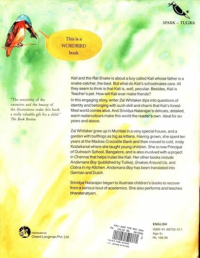 Kali hates school. And school hates him, he thinks, for he has no friends. His classmates find him strange. He wishes his father were an ‘ordinary' bus-conductor or postman instead of a snake-catcher, even if one of the most celebrated in the Irula tribe. He worries that others will see him eating fried termites (his favourite snack!) and laugh. And then one day, a large rat snake creates havoc in the classroom... A simple, sensitive story crafted by a writer deeply involved with environmental issues.