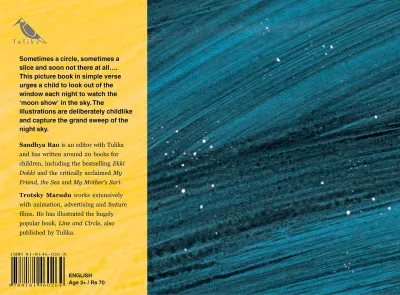 Sometimes a circle, sometimes a slice and soon not there at all... This picture book in easy verse urges a child to look out of the window each night to watch the 'moon show' in the sky – its waxing and waning. Echoing the text, the illustrations are deliberately childlike and capture the grand sweep of the night sky.