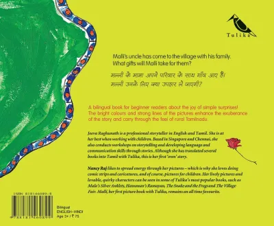 Malli's uncle and his family from the city have come to her village. She wants to take some gifts for them but has only one rupee. However, as she sets off on her way, her little basket slowly fills up… This story is about the joy of simple surprises. The exuberant illustrations carry the feel of rural Tamil Nadu with bright colours and strong lines.