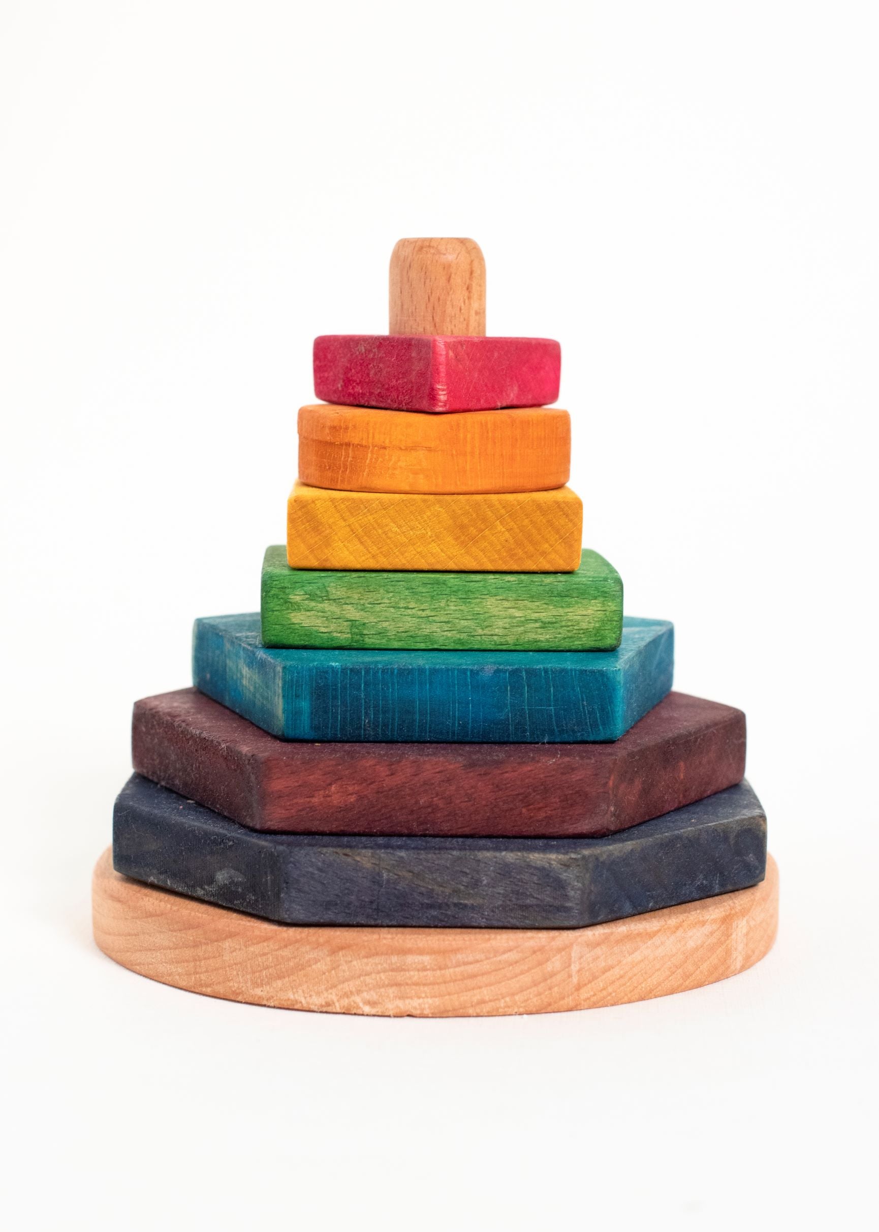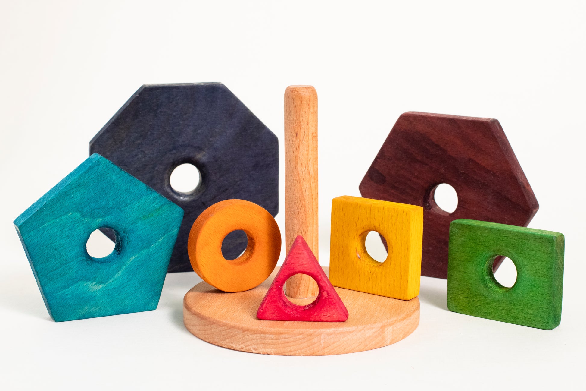 The Montessori Geometric Shapes Stacker is designed for babies who are in the stage of developing a better hand eye coordination, ranging from 12 months old to 36 months.