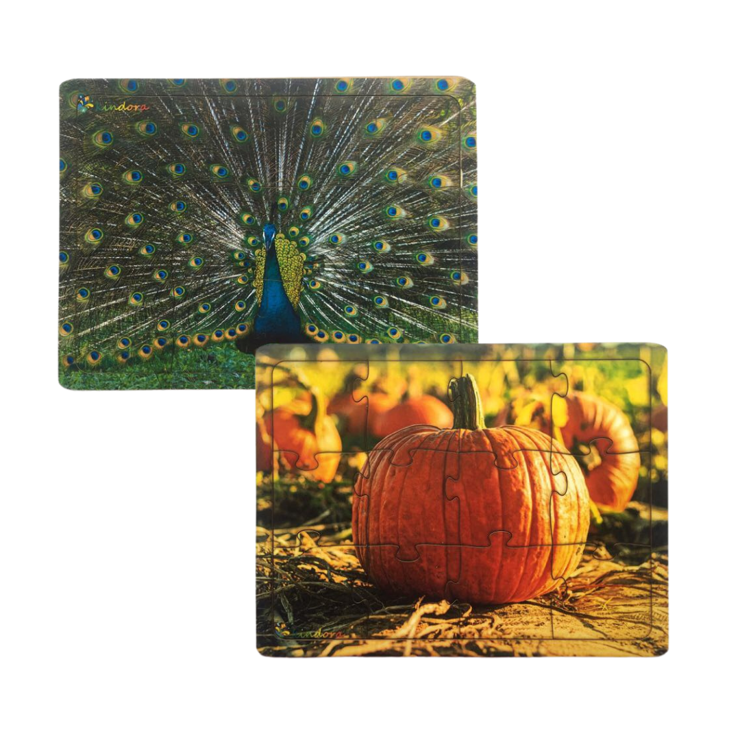Montessori Jigsaw Puzzle Combo - Indian Peacock and Indian Pumpkin