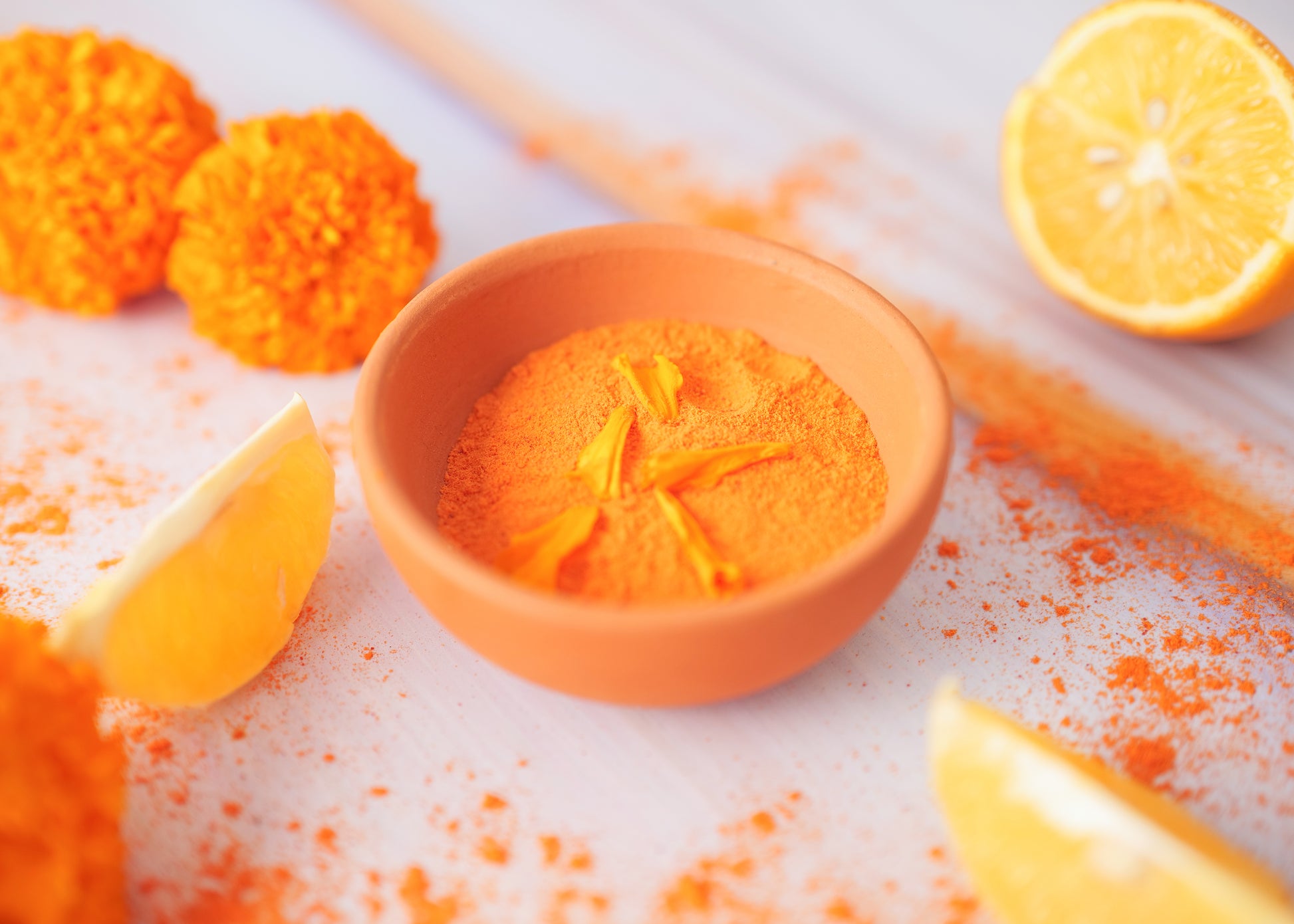 Herbal Ingredients such as Spinach, Marigold, Turmeric, Neem, Palash and natural Indigo are cleaned and sun-dried till they are moisture-free.