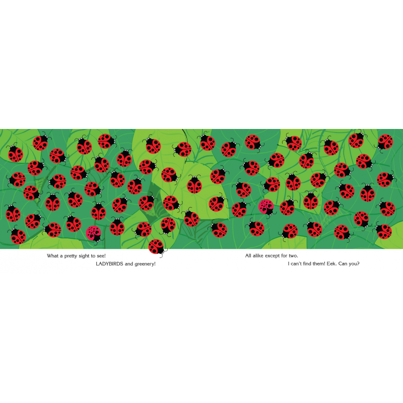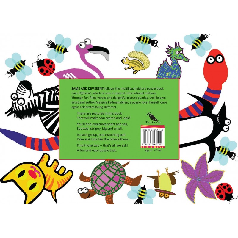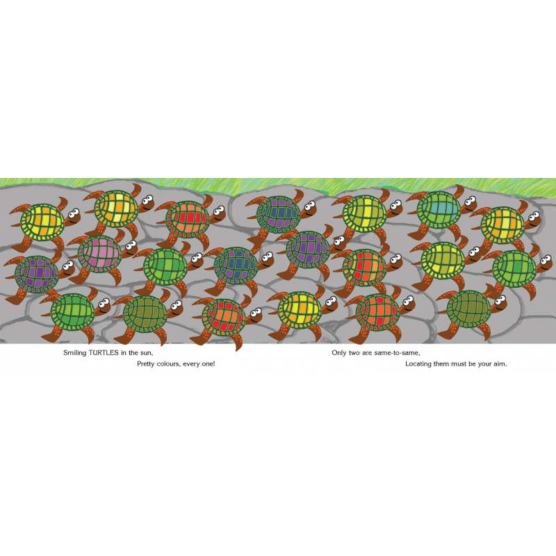 In each group of creatures on a page, one matching pair does not look like the others there. With chirpy rhymes and cheerful pictures, this puzzle book invites the reader to find similar and different creatures — a sometimes easy, sometimes challenging task! In her set of three books in the series, the well-known artist and writer, a puzzle lover herself, celebrates the idea of being different.
