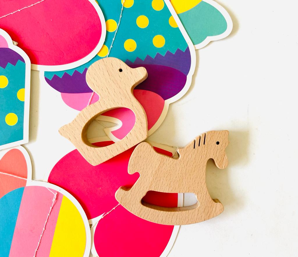 Choose from our interesting animal and car shaped teethers, locally made in India, all designed and individually handmade in small batches by our artisans.