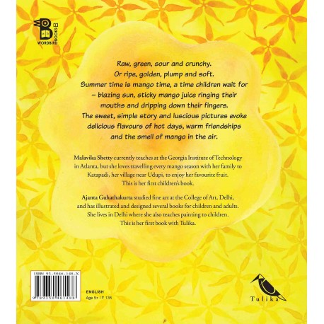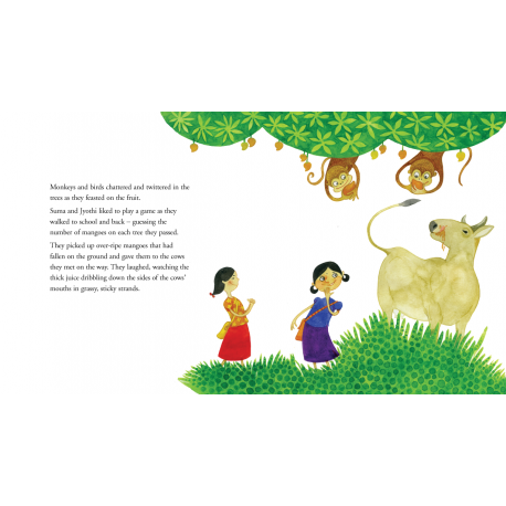 Raw, green, sour and crunchy. Or ripe, golden, plump and soft. Summer time is mango time, a time children wait for – blazing sun, sticky mango juice ringing their mouths and dripping down their fingers. The sweet, simple story and luscious pictures evoke delicious flavours of hot days, warm friendships and the smell of mango in the air.