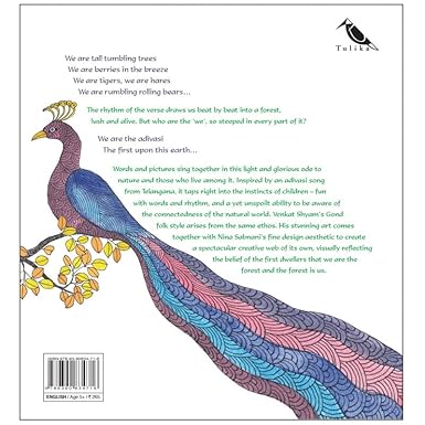 The rhythm of the verse draws us beat by beat into a forest, lush and alive. But who are the ‘we’, so steeped in every part of it? Words and pictures sing together in this light and glorious ode to nature and those who live among it. Inspired by an adivasi song from Telangana and with stunning art by a well-known Gond artist, this taps right into the instincts of children – fun with words and rhythm, and a yet unspoilt ability to be aware of the connectedness of the natural world.